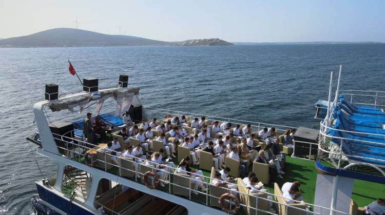 “Kitap okumanın ülke geleceği açısından önemine dikkat çekmek, Cumhuriyetin 100. Yılında farkındalık yaratmak için kitaplarını alan öğrenci ve öğretmenler Ege Denizinin maviliklerine açıldılar.”