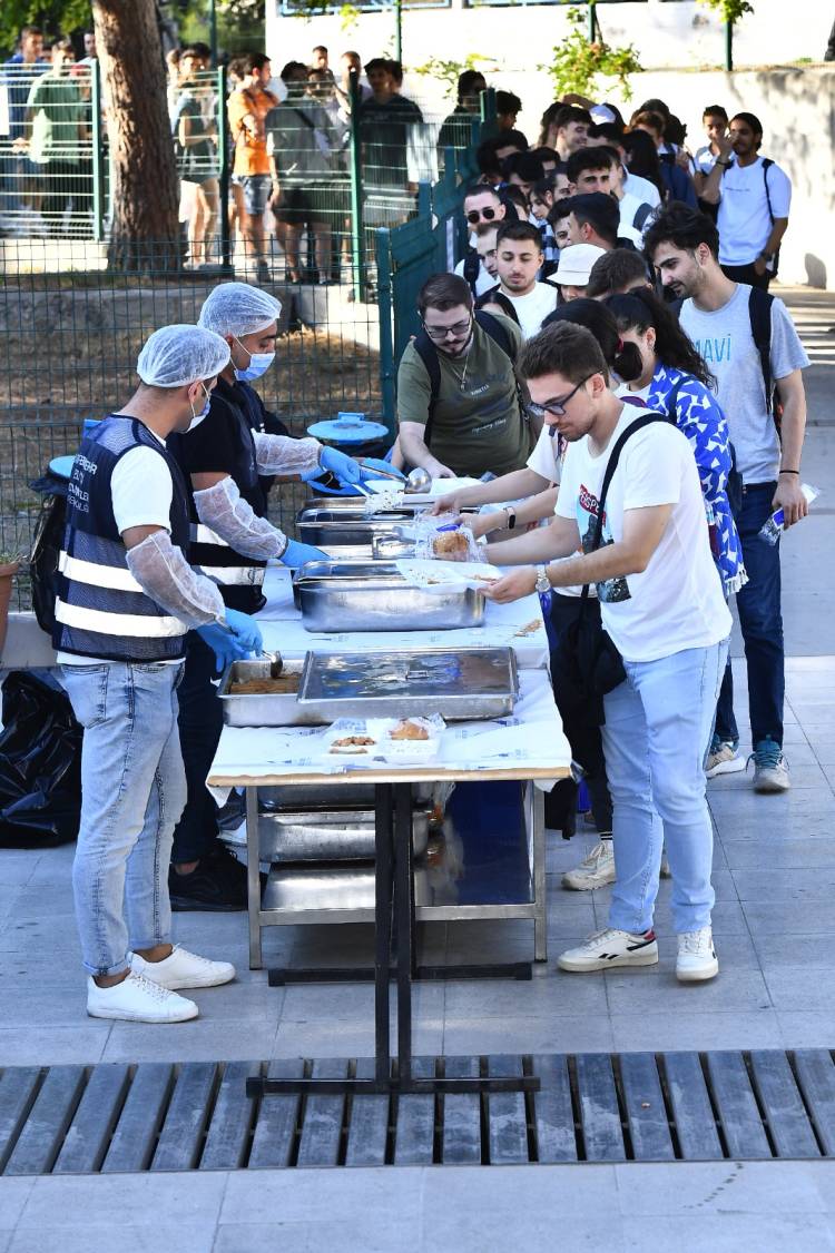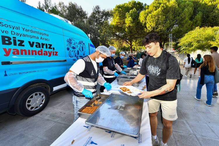Şehrin farklı bölgelerinde kurulan 6 noktada üniversite öğrencilerine sıcak yemek dağıtımı başladı. Bu hizmetten günde yaklaşık 5 bin öğrencinin faydalanması hedefleniyor. Başkan Soyer, öğrencilere hitaben "Annenizin mutfağını aratmayacağız" dedi.